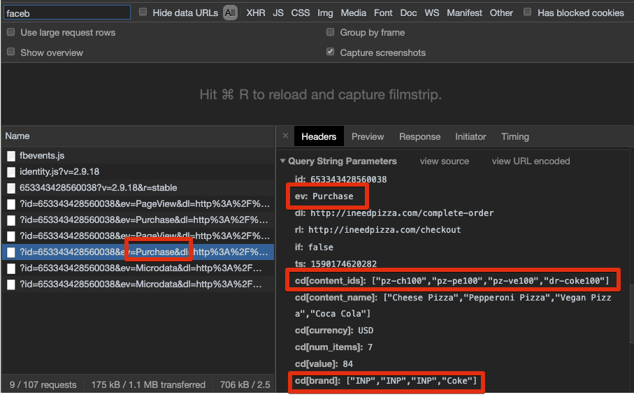Facebook Pixel Helperまたはブラウザの開発者ツールを使用してマッピングをテストします。