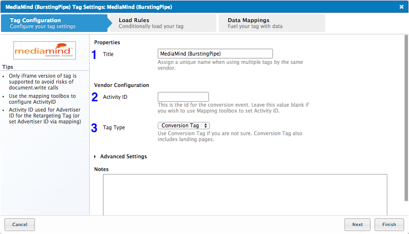 この記事では、MediaMind (BurstingPipe) タグの構成方法について説明します。