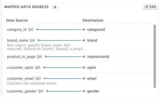 マッピングは、データレイヤ変数からベンダータグの対応する宛先変数にデータを送信するプロセスです。変数をタグの宛先にマップする方法についての手順については、データマッピングを参照してください。