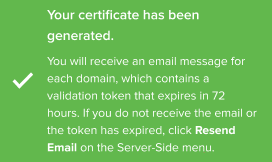 ドメインの検証は72時間以内に行われる必要があります。検証期間が経過した場合は、同じドメインの新しい証明書をリクエストします。DNS検証レコードは、同じドメインの後続のリクエストで同じです。
