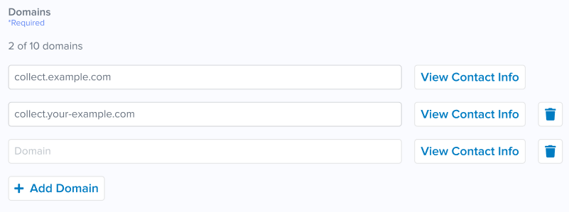 ドメインのリストに空の行が追加されます。アカウントの最大ドメイン数に達すると、+ Add Domainは無効になります。