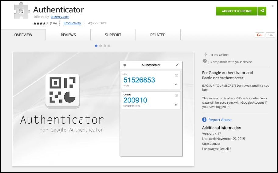 - Chrome Webストアに移動し、Authenticator Chrome拡張機能を追加します。