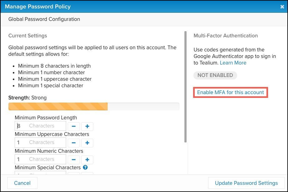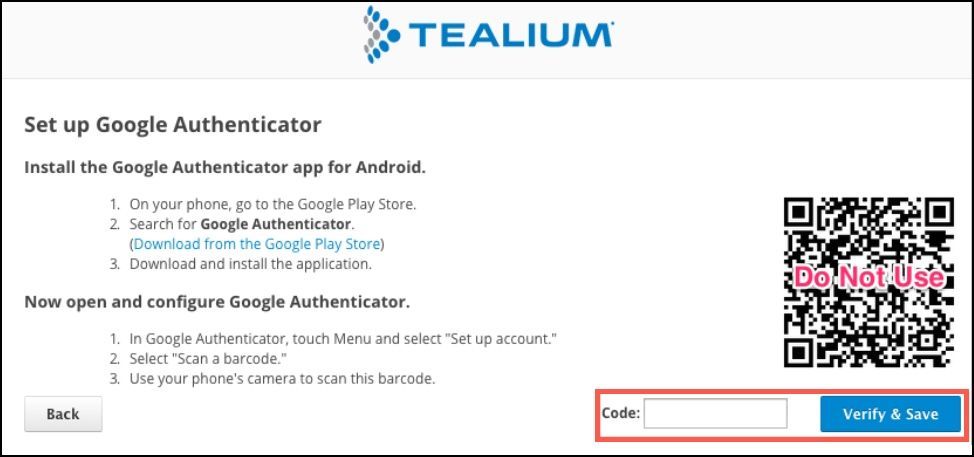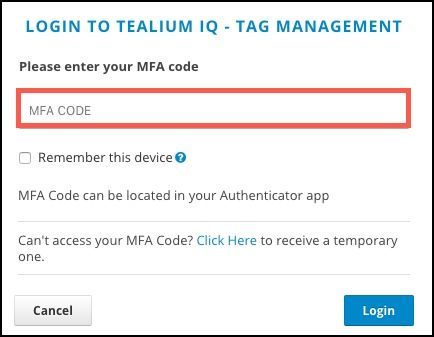 このセクションでは、Tealiumにログインする際にスマートフォンを使用せずにマルチファクタ認証(MFA)を使用する方法について説明します。