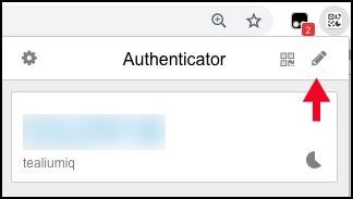 AuthenticatorアイコンをクリックしてAuthenticator拡張機能を起動し、鉛筆アイコンをクリックして新しいQRコードを追加します。