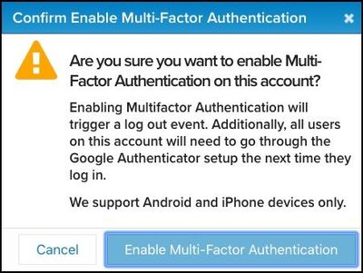 MFAの有効化または無効化には、アカウントの管理の権限が必要です。アカウント管理者のみがこの構成を切り替える権限を持っています。