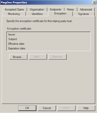 - Encryptionタブをクリックし、Removeをクリックして暗号化証明書をダウンロードします。