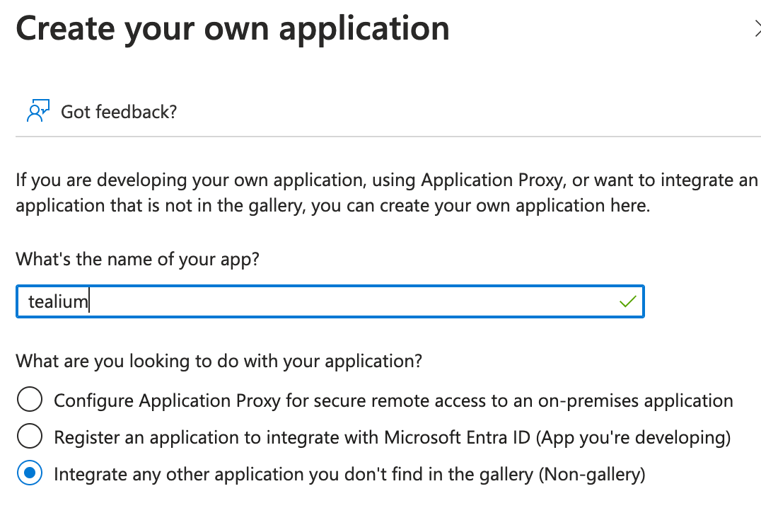 - **Integrate any other application you don’t find in the gallery (Non-gallery)**が選択されていることを確認します。