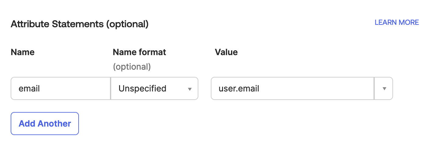 - **Attributes Statements (optional)**セクションで、以下の構成を持つ属性ステートメントを追加します: