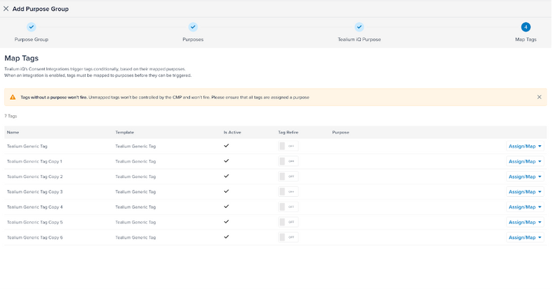 Tealium iQ Consent Integrationsを使用すると、サポートされている非Tealiumの同意管理プラットフォームと統合できます。あなたのCMPは、必要に応じてエンドユーザーに目的ベースの同意を求め、そのユーザーの同意決定をキャプチャして保存します。統合がアクティブな場合、タグは目的グループ内の目的に割り当てられる必要があります。目的に同意されると、その目的に割り当てられたタグをトリガーすることができます。