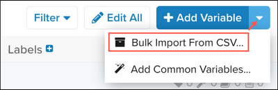 Bulk Import from CSVオプションを使用して変数を追加するには、以下の手順を使用します: