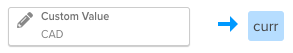 タグベンダーは通貨コードのパラメータ curr を持っていますが、タグは常に同じ( CAD など)通貨の単一の地理的地域にのみ展開されます。この場合、値がサイト全体で一定であるため、データレイヤー変数は必要ありません。期待される通貨コード CAD は、次のようにカスタム値マッピングとして直接構成できます: