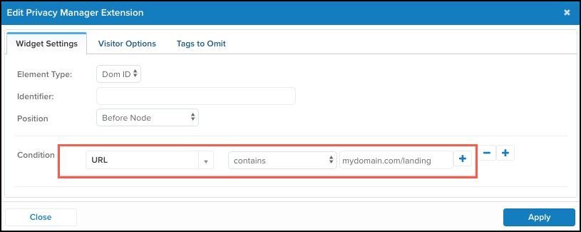 ウィジェット構成タブをクリックして、新しいプライバシーマネージャーボタンを訪問の画面に表示する位置を選択します。