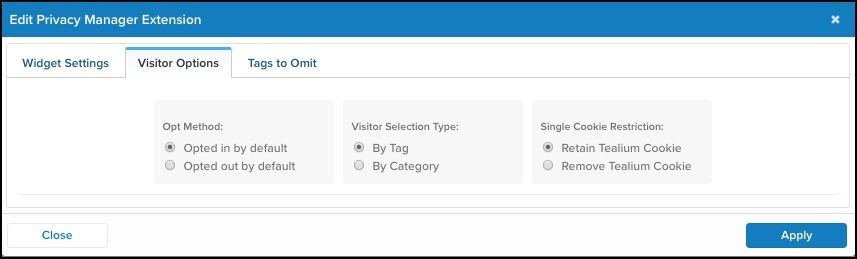 訪問オプションタブをクリックして、訪問がタグのトラッキングをオプトインまたはオプトアウトする方法を決定するオプションを選択します。