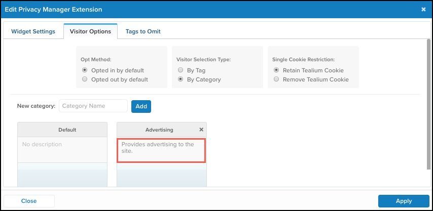 このセクションでは、プライバシーコントロールに使用するカテゴリを定義する場所について説明します。
