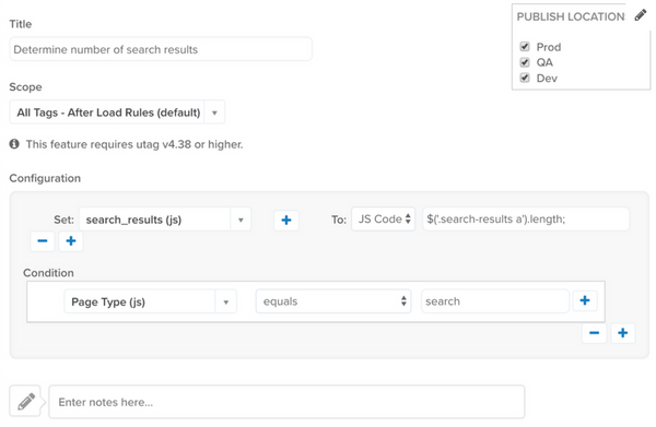 この例では、JavaScriptステートメントが返す値に変数を構成する方法を示します。このシナリオでは、検索ページ上の検索結果の数は、jQueryを使用してページ上の検索結果リンク要素の数を選択することで決定されます。変数search_resultsはJavaScriptコードが返す値に構成されます。