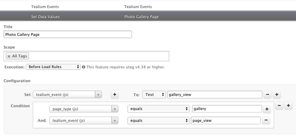 ロードルールは、その条件を簡素化するためにtealium_eventを使用します。