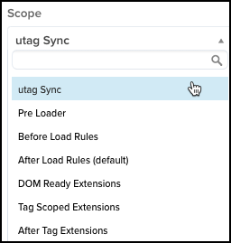 有効化すると、utag SyncスコープがJavaScriptまたはAdvanced JavaScript拡張機能のスコープドロップダウンリストに表示されます。