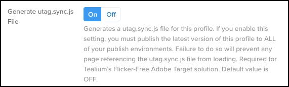 このプロファイルの最新バージョンをすべての公開環境に公開する必要があります。そうしないと、utag.sync.jsファイルを参照するページがロードされなくなります。