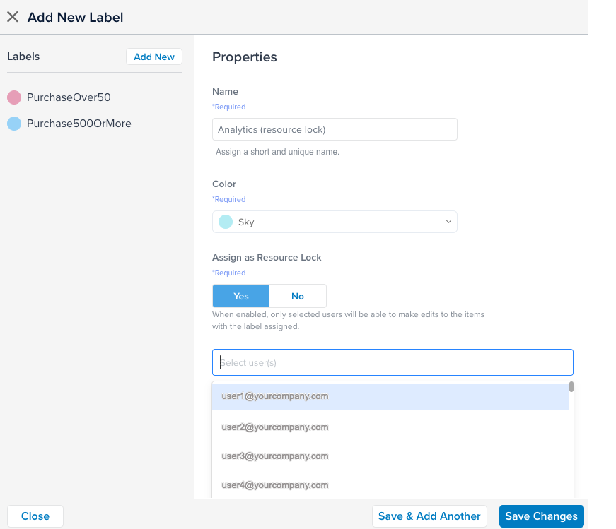 リソースロックを通常のラベルに戻すと、そのリソースロックに割り当てたユーザーのリストは失われます。