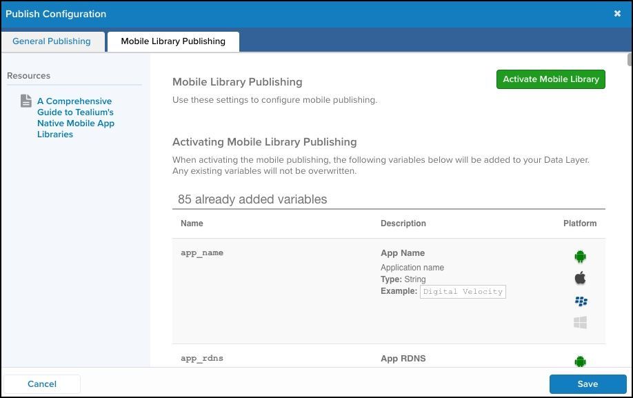このプロファイルは、アカウント名、プロファイル名、および公開環境を参照することで、Tealium for Mobileアプリケーションで参照することができます。
