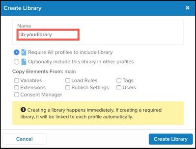 ベストプラクティスとして、ライブラリとプロファイルを区別するための命名規則を使用します。例えば、ライブラリ名の前にlib-を追加すると、ライブラリとプロファイルのどちらを操作しているかを簡単に判断することができます。プロファイルとライブラリは同じ名前を共有することはできません。