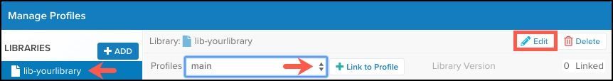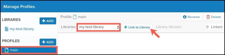 - プロファイルリストから、ライブラリにリンクしたいプロファイルを選択します。 オプションで、リンクしたいライブラリを選択します。