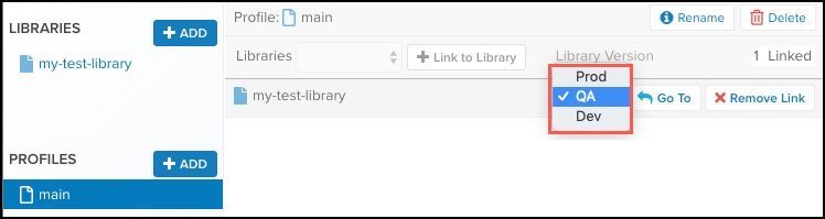 - プロファイルにリンクしたいライブラリの公開環境(Dev、QA、Prod)を選択します。