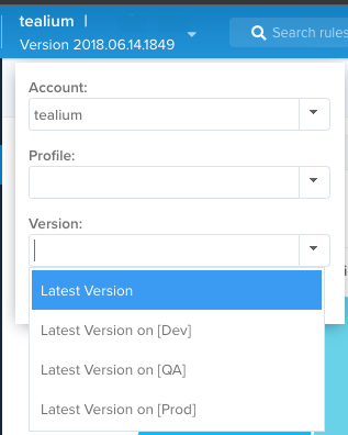 Tealium iQタグ管理を初めて読み込むと、プロファイル切り替えは現在のプロファイルの最新バージョンを表示します。