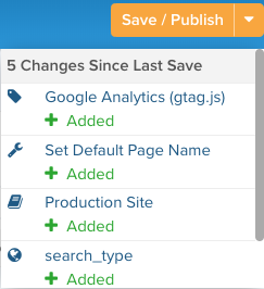 インターフェースは、保存されていない変更を警告するオレンジ色の視覚的な手がかりを表示します。保存/公開 ドロップダウンをクリックして、保存されていない変更の概要を表示します。