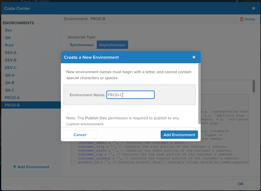 - 新しいカスタム環境をすべて作成するために、プロファイルを任意の環境でSave/Publishします。