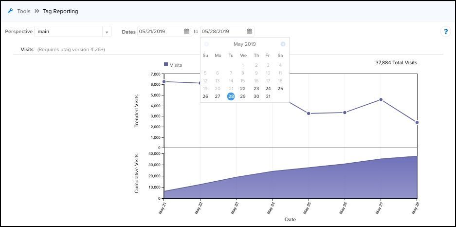 タグレポートは、Tealiumプラットフォームを通じて流れるデータを完全に処理し、表示するのに最大48時間かかることがあります。日付範囲が過去24〜48時間のみを含む場合、レポートにデータが表示されない場合があります。ベストプラクティスとして、現在の日付の少なくとも48時間前の終了日を入力します。