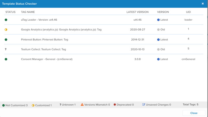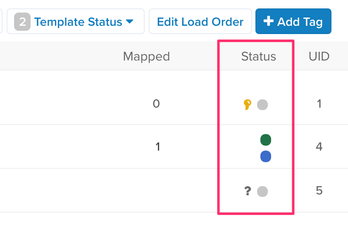 - ステータス列がタグのリストに表示され、各テンプレートのステータスの色分けされたインジケーターが表示されます。