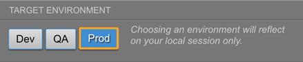 Target Environmentセクションには、現在の環境が青で表示され、コード化された環境がオレンジの境界線で表示されます。