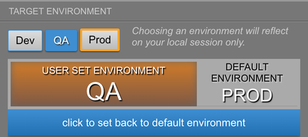 - ページにロードされる環境を変更するには、DevまたはQAをクリックし、次にRefresh Pageをクリックします。ページは新しく選択された環境で更新されます。