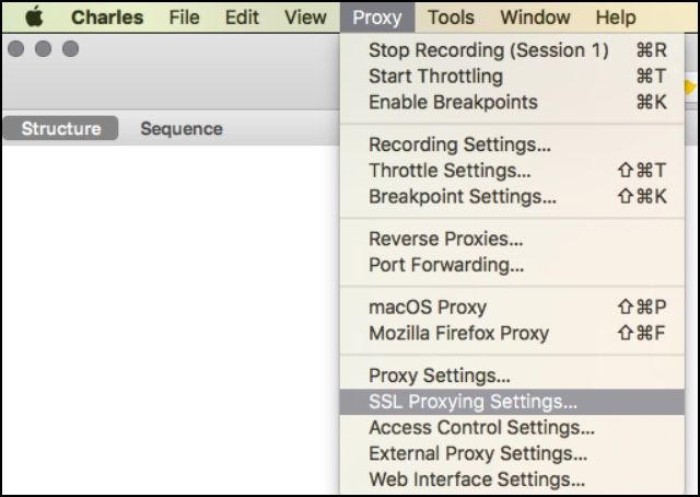 Charlesプロキシを構成するには、以下の手順を使用します: