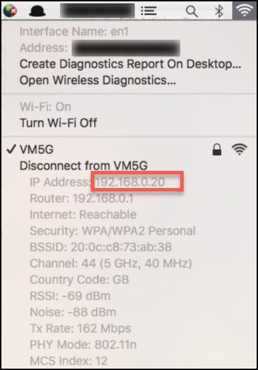 Macでは、システムトレイのネットワークアイコンをクリックしながらOptionキーを押し続けることで確認できます。