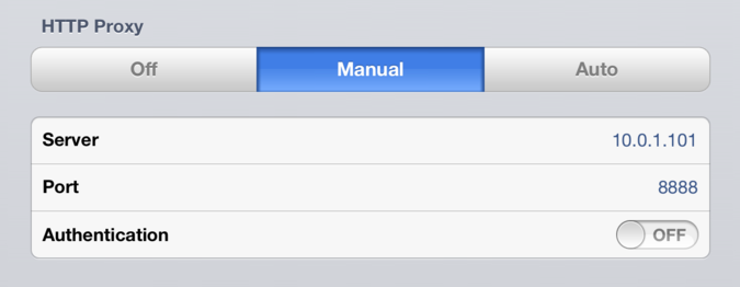 - アクティブなWi-Fiネットワークの詳細を選択し、HTTP Proxy セクションで Manual モードを選択します。