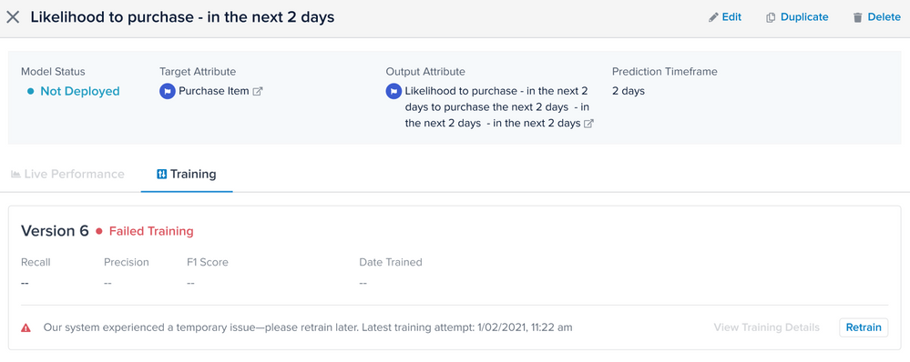 以下のセクションをガイドとして、モデルの再訓練の準備をします。訓練済みのモデルを編集したり、含まれている属性や除外されている属性を見るには、モデルのレビューを参照してください。