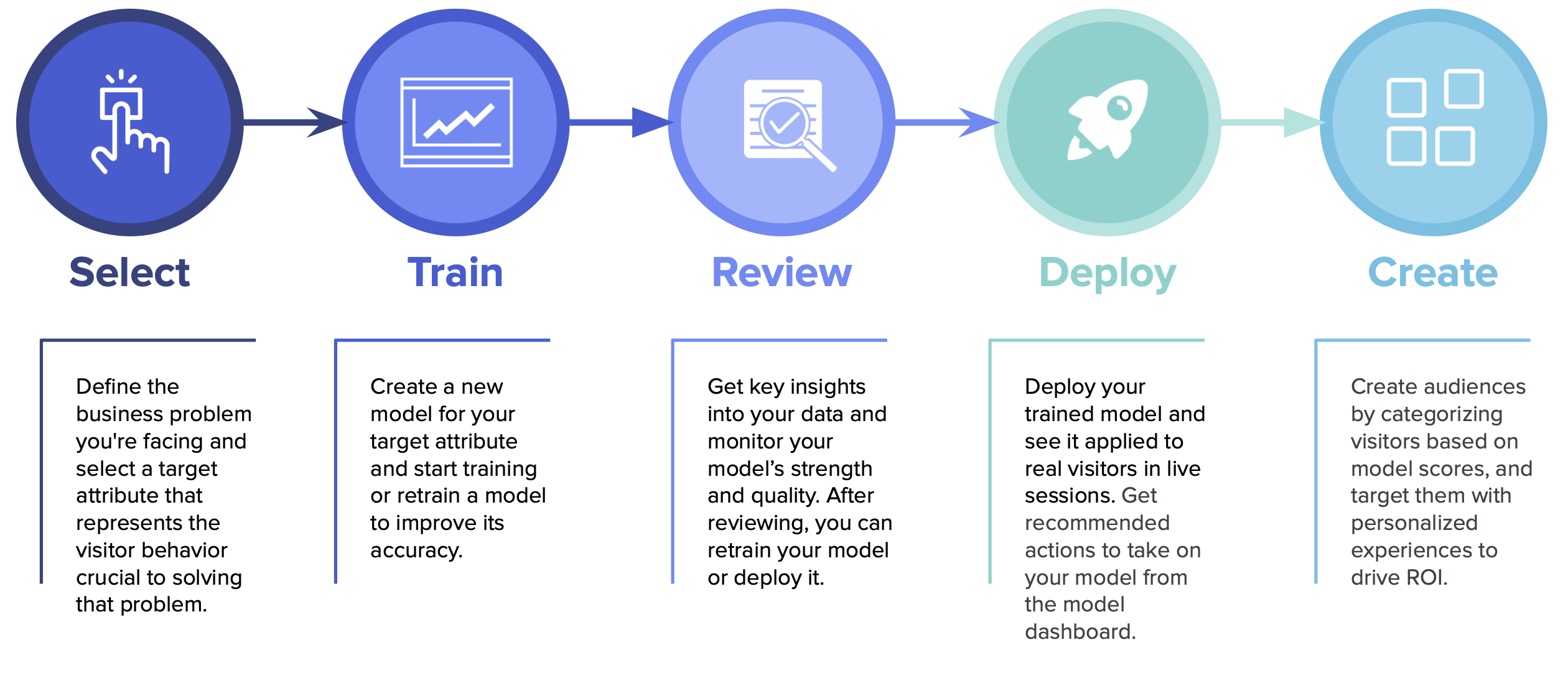 デプロイされたモデルを使用して、予測値を使用して訪問をより効果的にターゲットにし、ROIを向上させるためのパーソナライズされた体験を作成するオーディエンスを作成することができます。