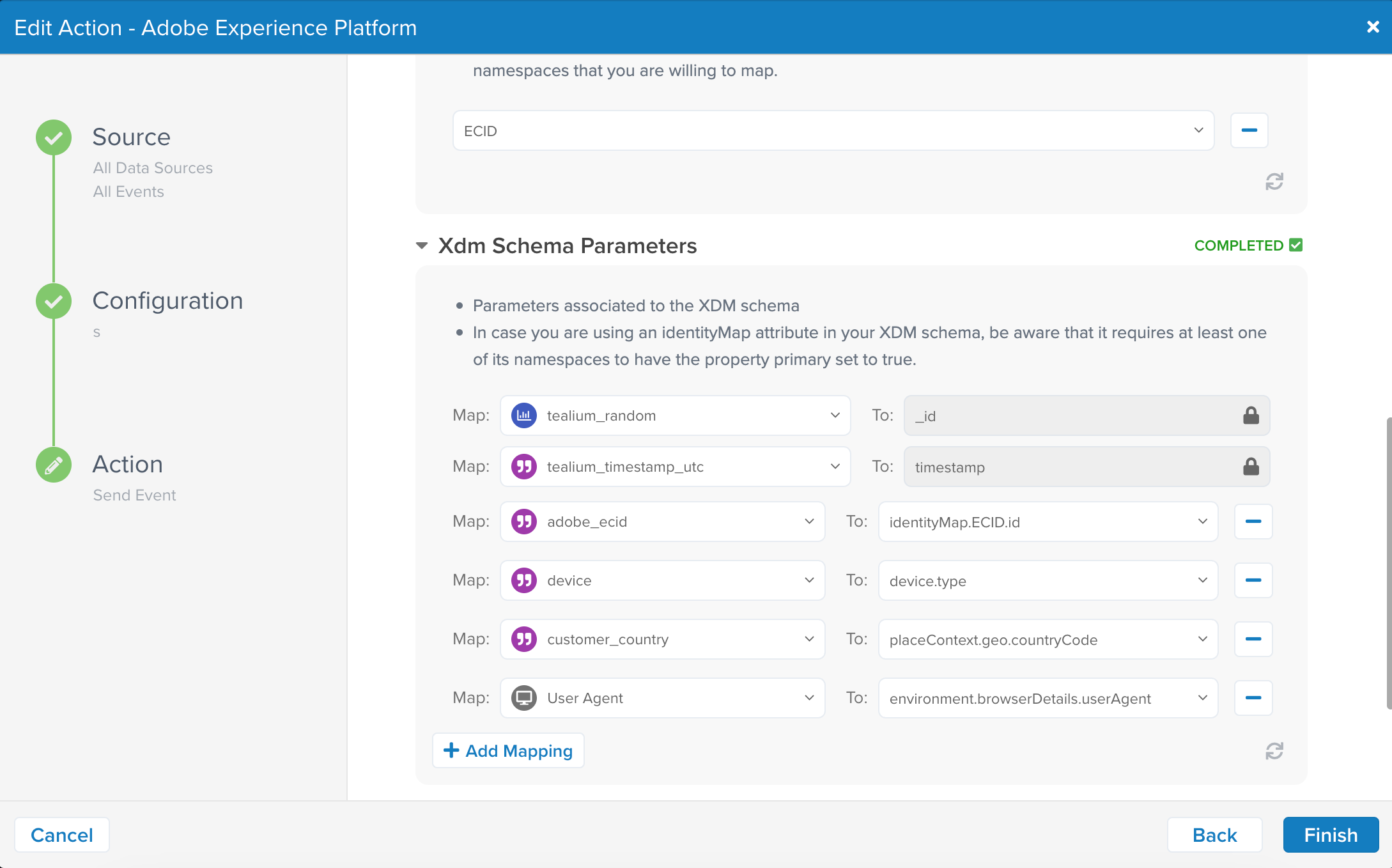 次の画像は、Tealiumでのマッピングの例を示しています:
