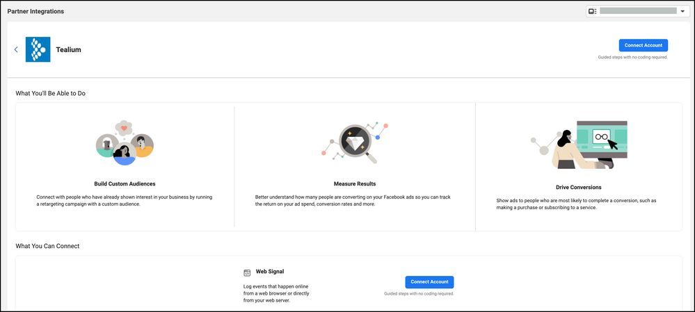 Facebook Adsアカウントの構成でTealiumパートナー統合を有効にします。