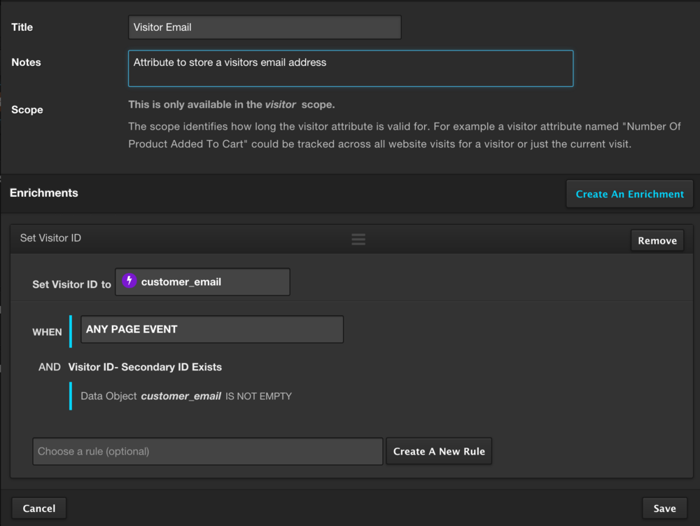 ユーザーのメールアドレスを保存するための新しいVisitor ID属性を作成します。これはリードと関連付けられる一意の値です。
