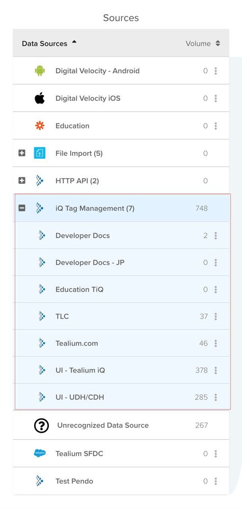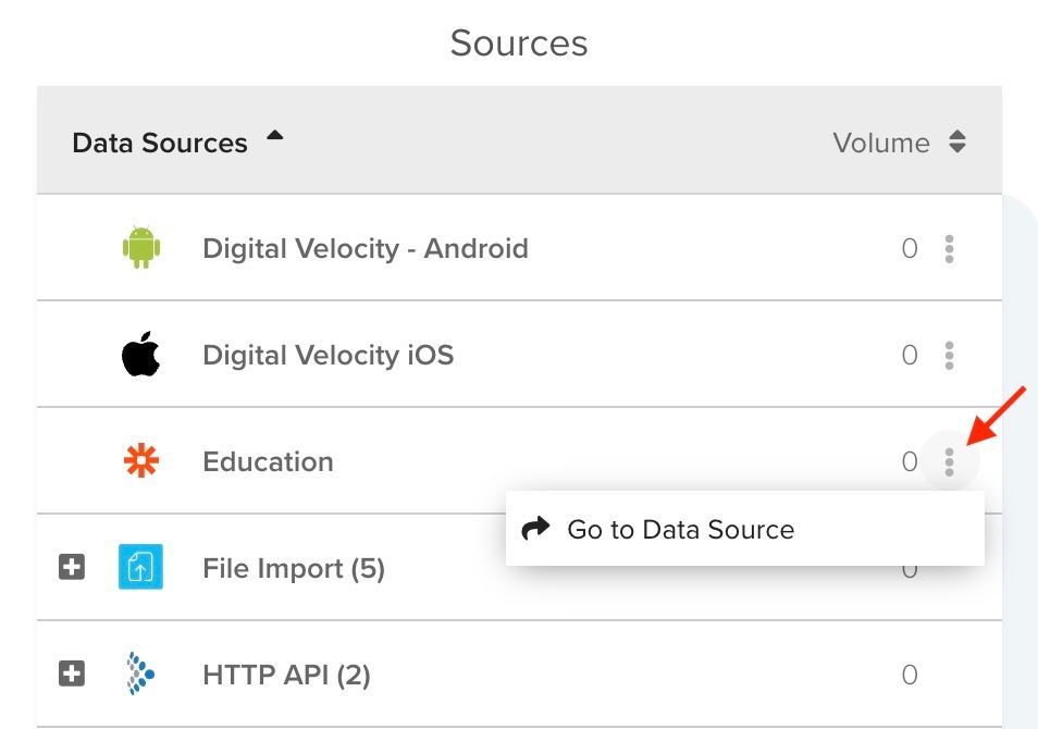 その他のオプションアクションボタン (︙) をクリックして、データソース、コネクタ、またはイベントフィードに直接移動して編集します。