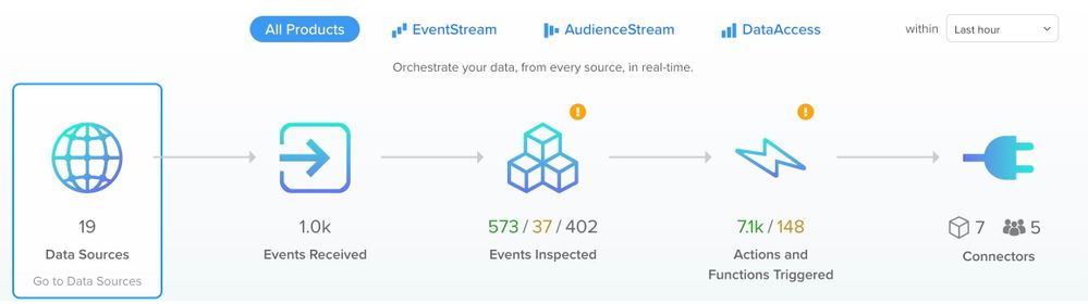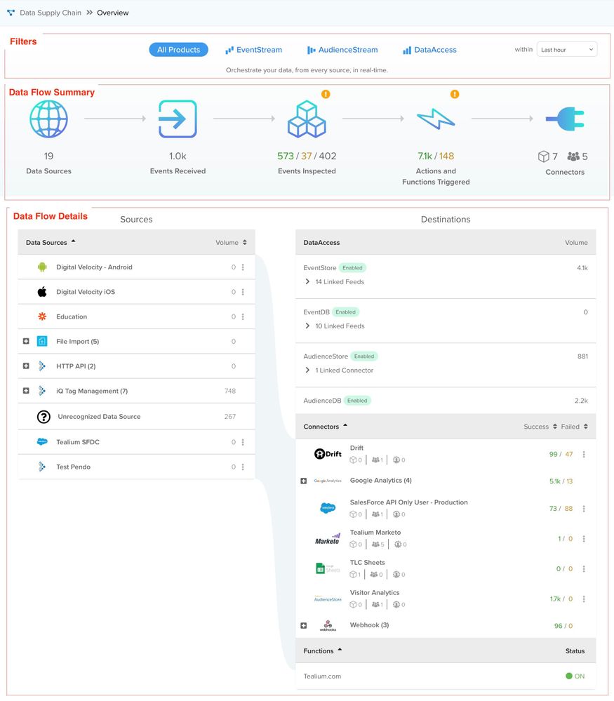 データサプライチェーンダッシュボードは、カスタマーデータハブのデータサプライチェーンの包括的な概要を提供します。