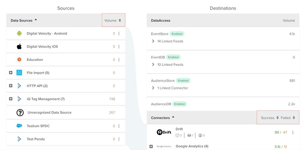 - データフロー詳細 - データコネクトと健康状態を確認するための特定のコンポーネントを調査します。