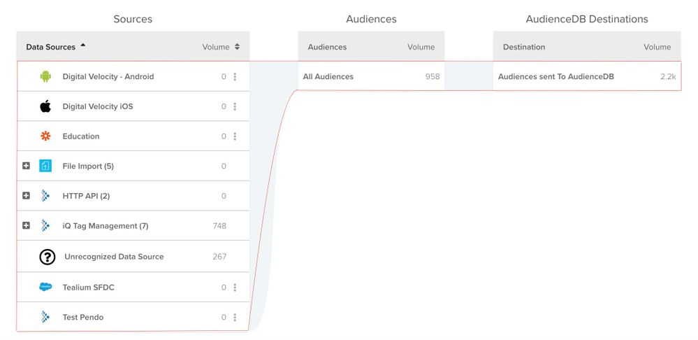 AudienceDBのサマリービューから、データソースまたは以下のビューを選択します: