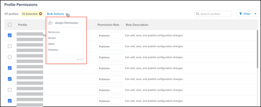 - プロファイルへのアクセスを許可するには、権限ロールを選択します。