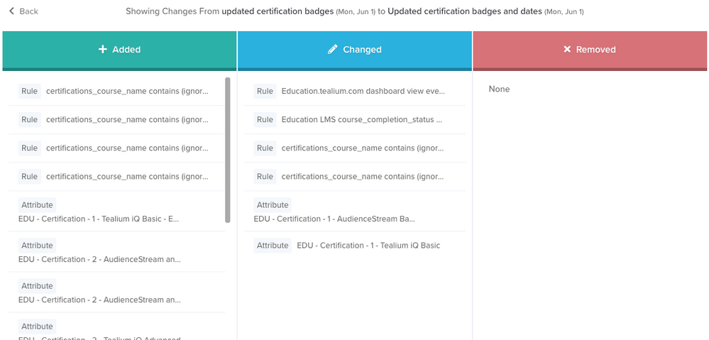 - Removed 列は、どのルールまたは属性が削除されたかを示します。
