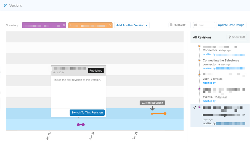 Switch to This Revision をクリックすると、Customer Data Hub内のそのリビジョンの概要ページに移動します。