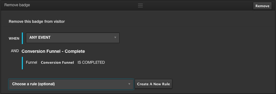 また、ファネルが完了した場合には、Page View イベントでバッジを削除する必要があります。